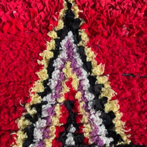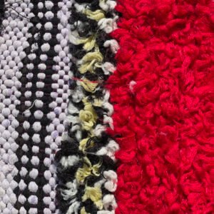Moroccan weavers use recycled materials, strips, and rags to create their Boucherouite rugs. They mix these with a wide variety of worn-out clothing and textile materials (wool, cotton, synthetic fibers, lurex, nylon, etc.) to define the dominant colors of their Boucherouite carpets. The design process is then very spontaneous and representative of the memory and past of the Berber woman. Boucherouite rugs can be an explosion of bright and warm colors, as well as a softer expression of the weaver’s sensitivity, with more muted tones. These rugs do not imitate or reproduce elements of the surrounding nature, but rather emotions and feelings. It is a more abstract artistic expression that nonetheless results in an often orderly, vibrant, and colorful ensemble. The Boucherouite rug is a marvel of Berber art, remarkable for its authenticity as well as its aesthetics.